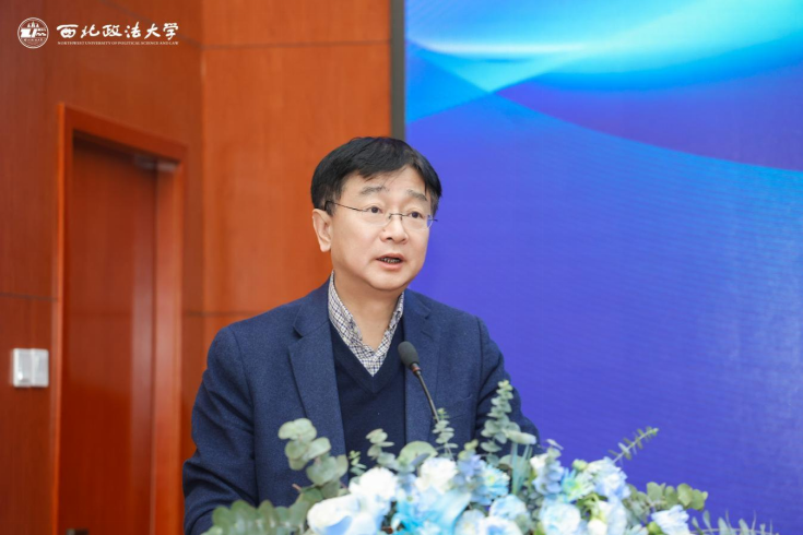 范九利向出席活动的各方人员致以热烈欢迎和诚挚问候,向即将获授硕士学位的同学表示祝贺。他表示,色色视频 法律硕士教育学院高级法律研修班历史悠久、规模大、培养质量优,赞赏将法律硕士、非全日制硕士、同等学力申硕进行三位一体联结,并创新性地采用主题论坛式培养模式,希望学院持续办好研修班。他指出,学校紧扣国家战略,定位立足西北、面向全国、辐射“一带一路”,致力于2035年建成中国特色国际知名一流政法大学。他强调,新质生产力的发展离不开数字法治的保障,本次论坛聚焦两者协同发展,既是响应国家战略需求的重要举措,也是学校立足法学学科优势、服务法治中国建设的责任担当。希望通过本次活动搭建学术交流与校友合作平台,推动前沿研讨与行业发展,凝聚多方智慧为数字法治建设贡献力量。最后,范九利预祝论坛圆满成功,祝愿校友新年快乐。